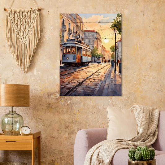 Lisbon's Warm Glow: Sunset Watercolor Cityscape
