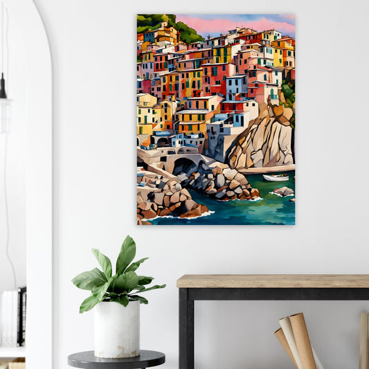 Manarola's Colorful Charm: Watercolor Coastal Village
