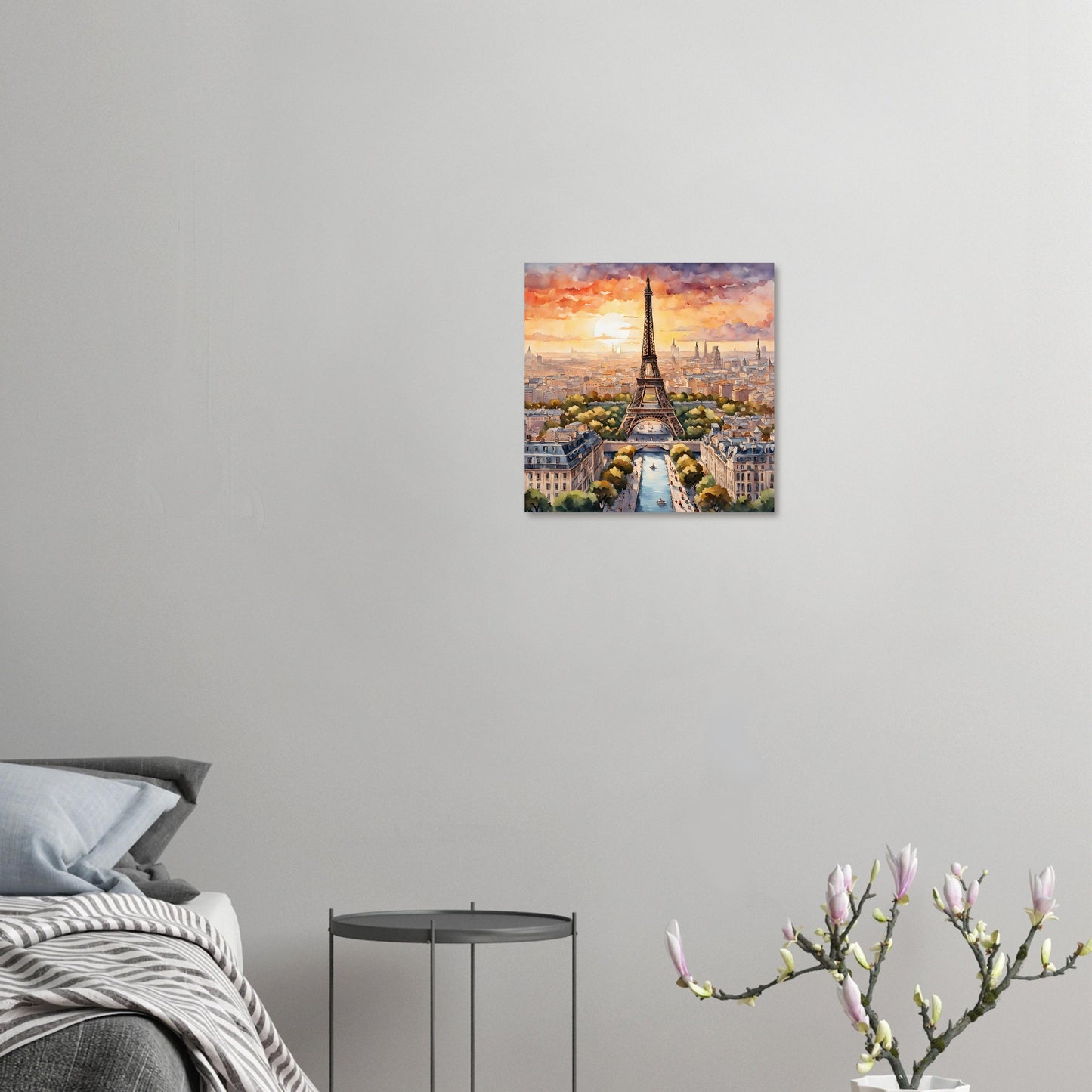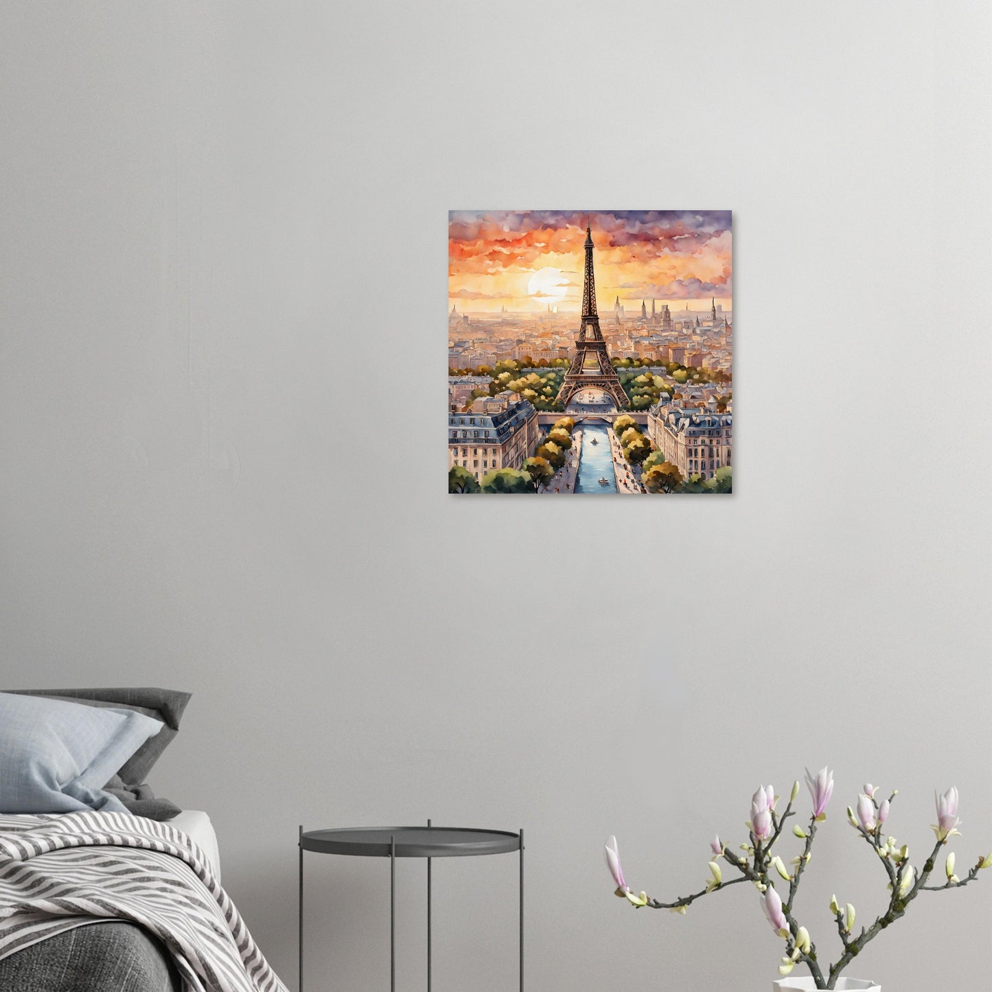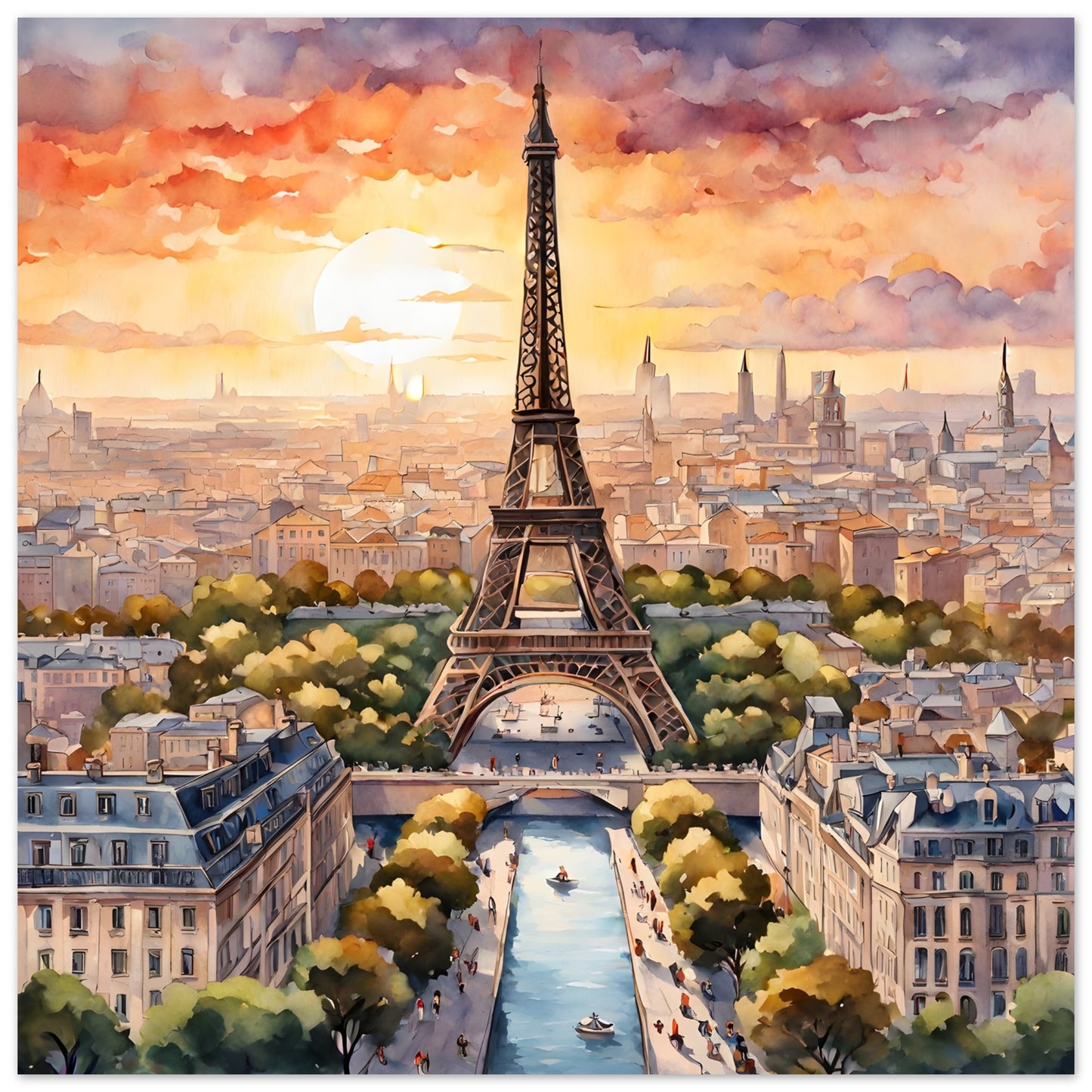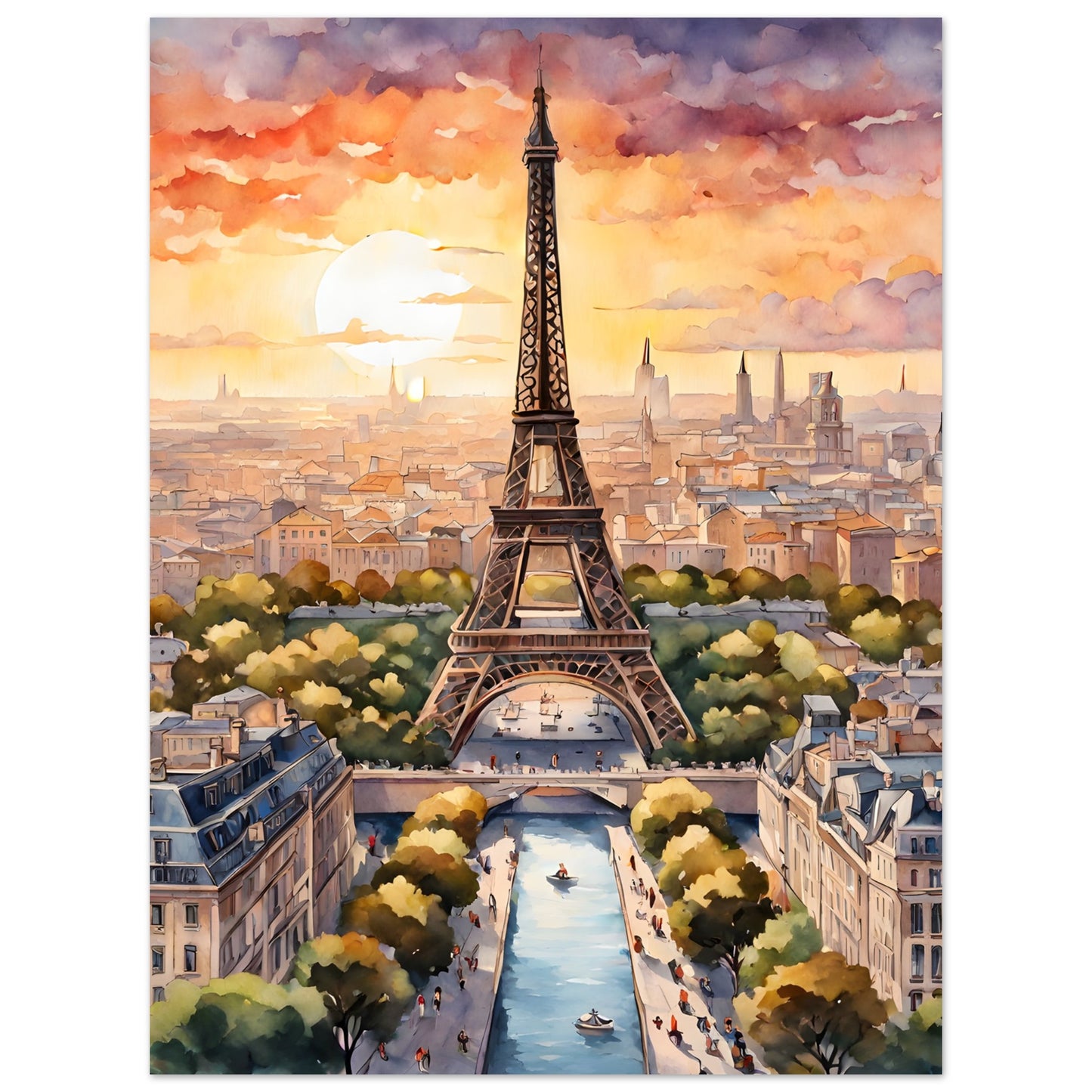Eiffel Tower's Sunset Splendor in Watercolor Portrait
