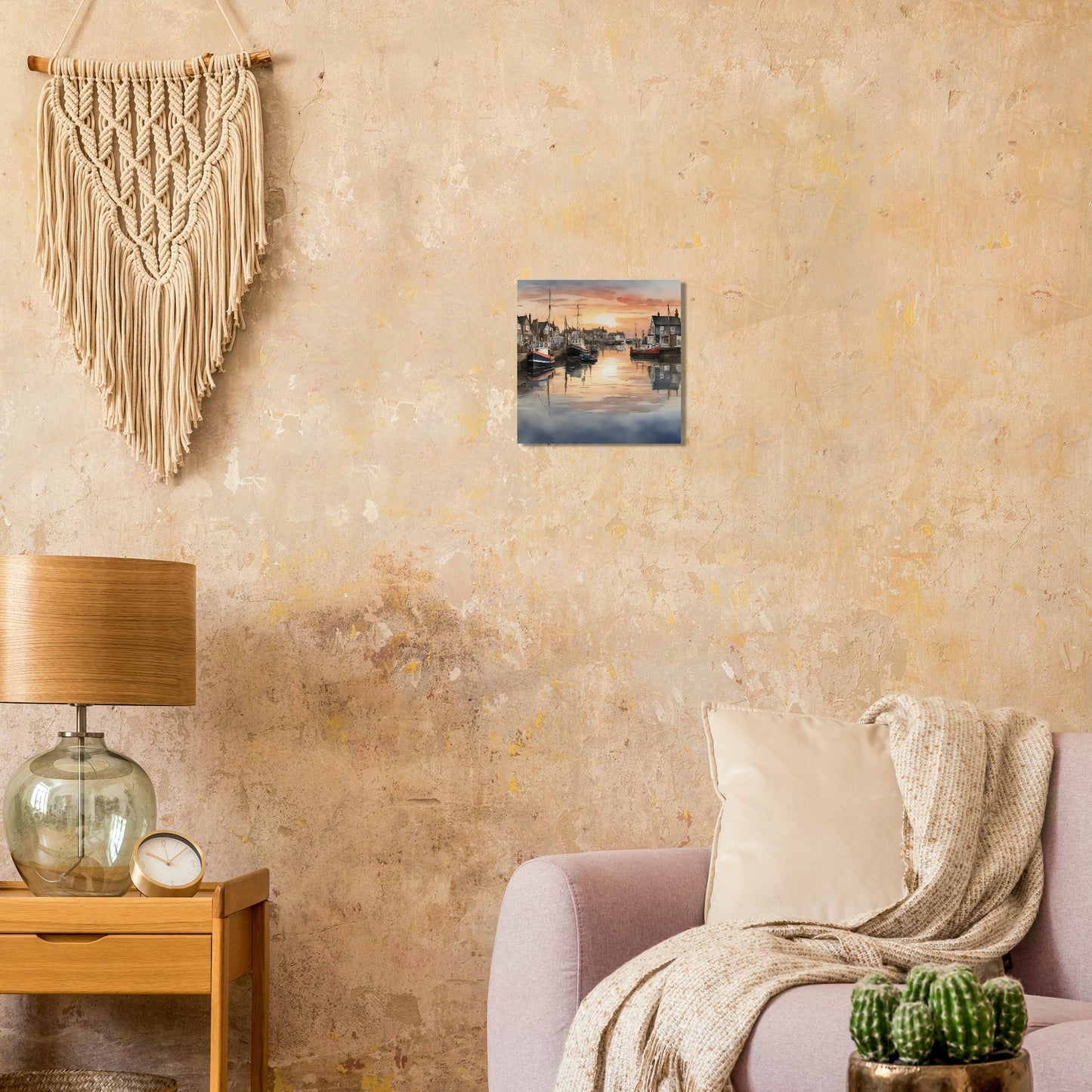 Printed on brushed silver Aluminium DIBOND® for a textured, industrial look, this option brings a unique artistic effect as colours interact with the metallic surface. The material is 3mm (0.12") thick, offering a durable, rigid base with a matte finish ideal for abstract art and black-and-white designs. The hanging kit is included and varies by fulfillment country, with sizes available in 18 options (US & Canada in inches; rest of the world in centimeters).