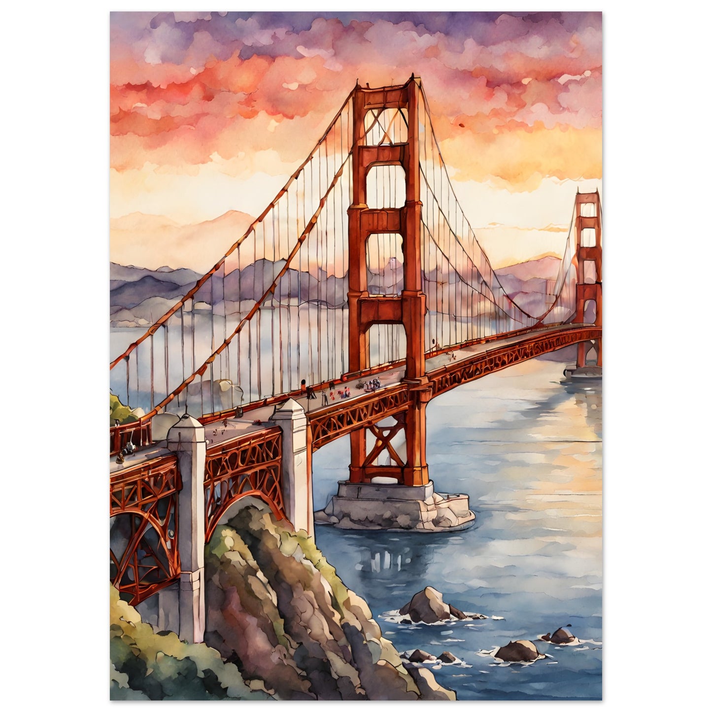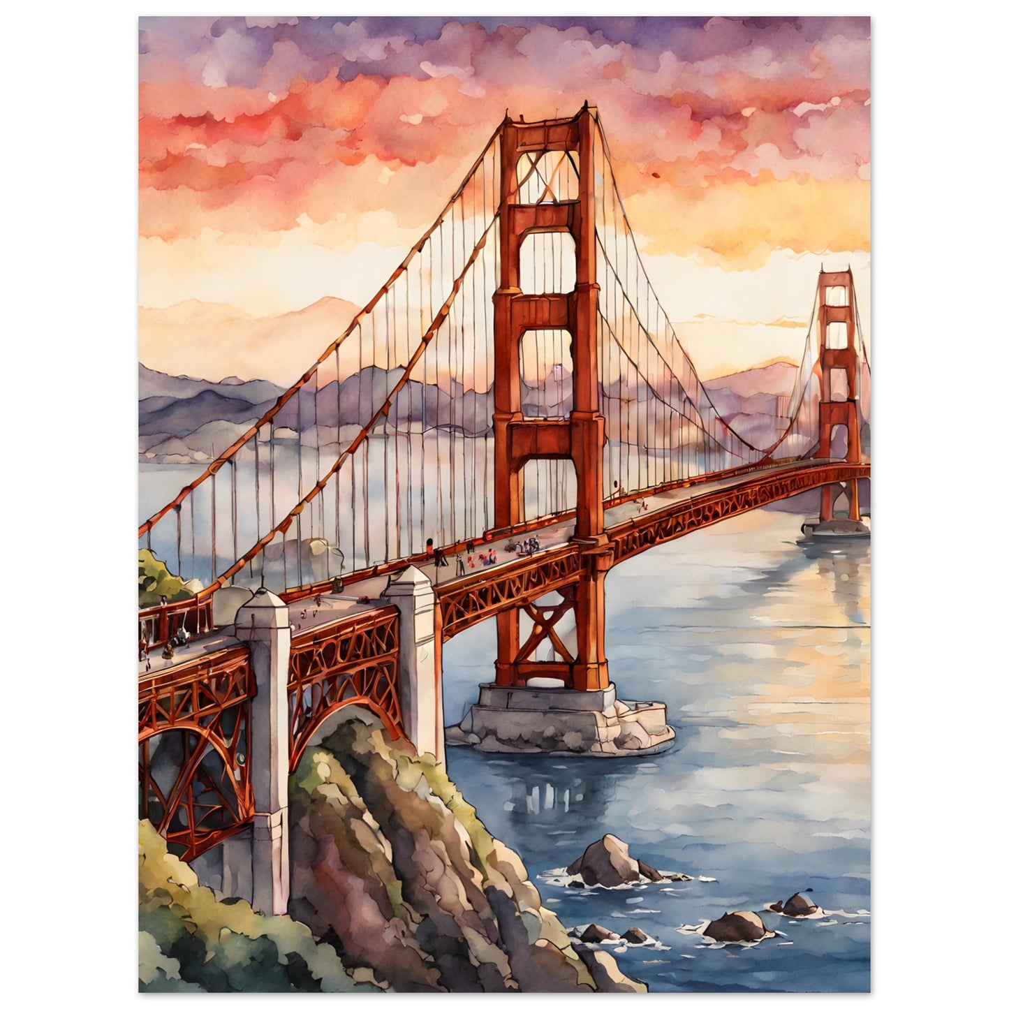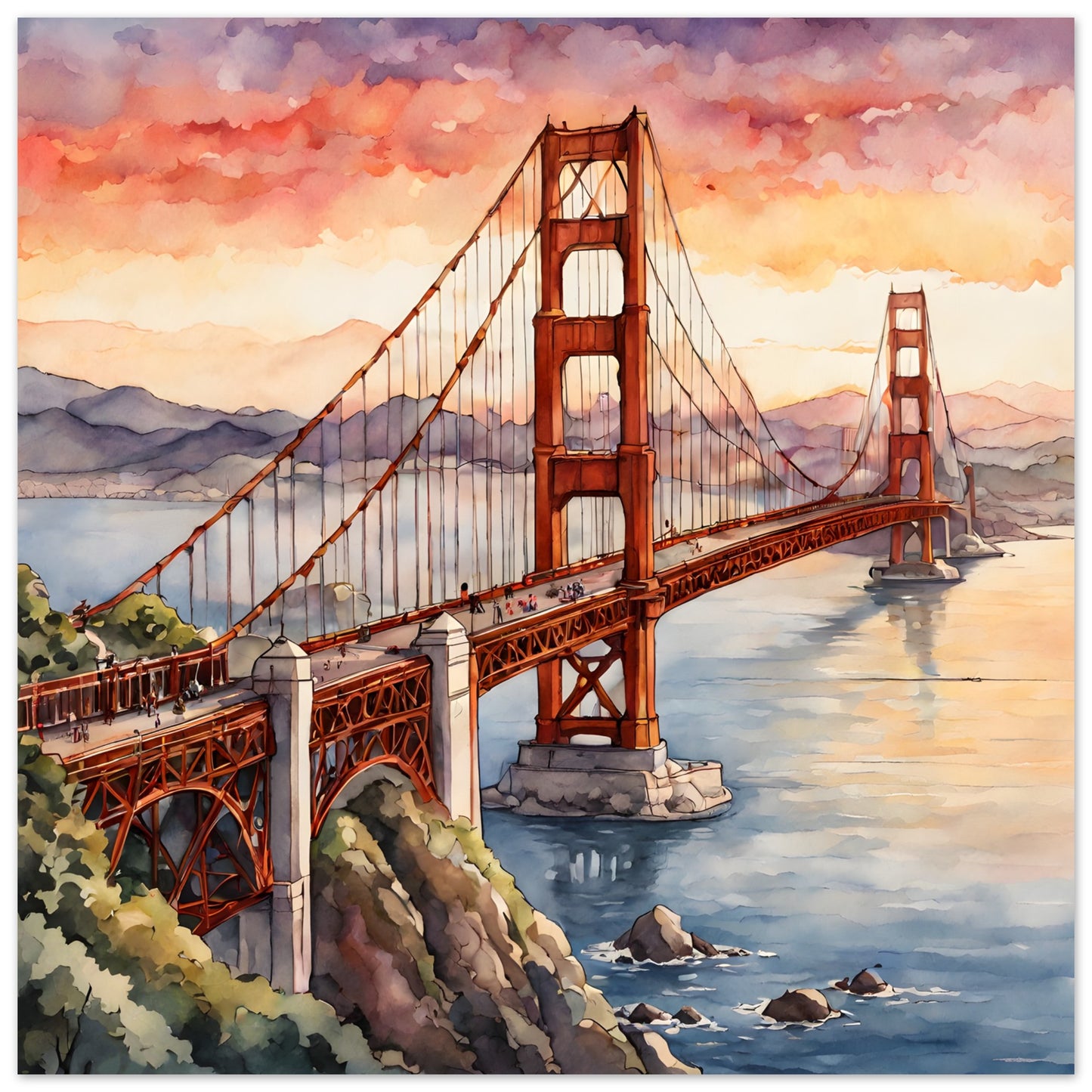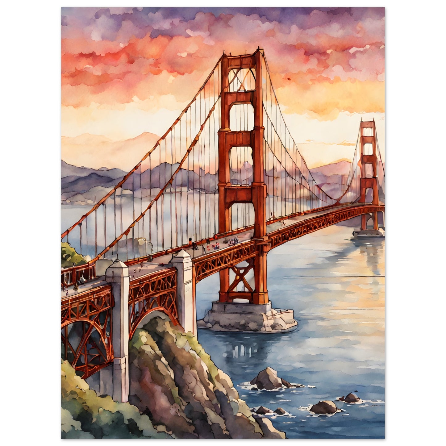 Golden Gate: Watercolor Sunset, San Francisco's Icon