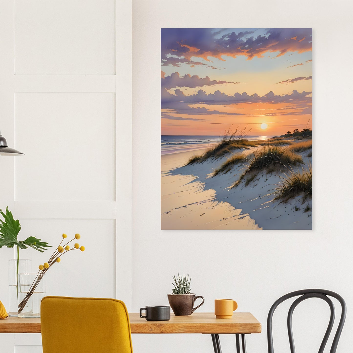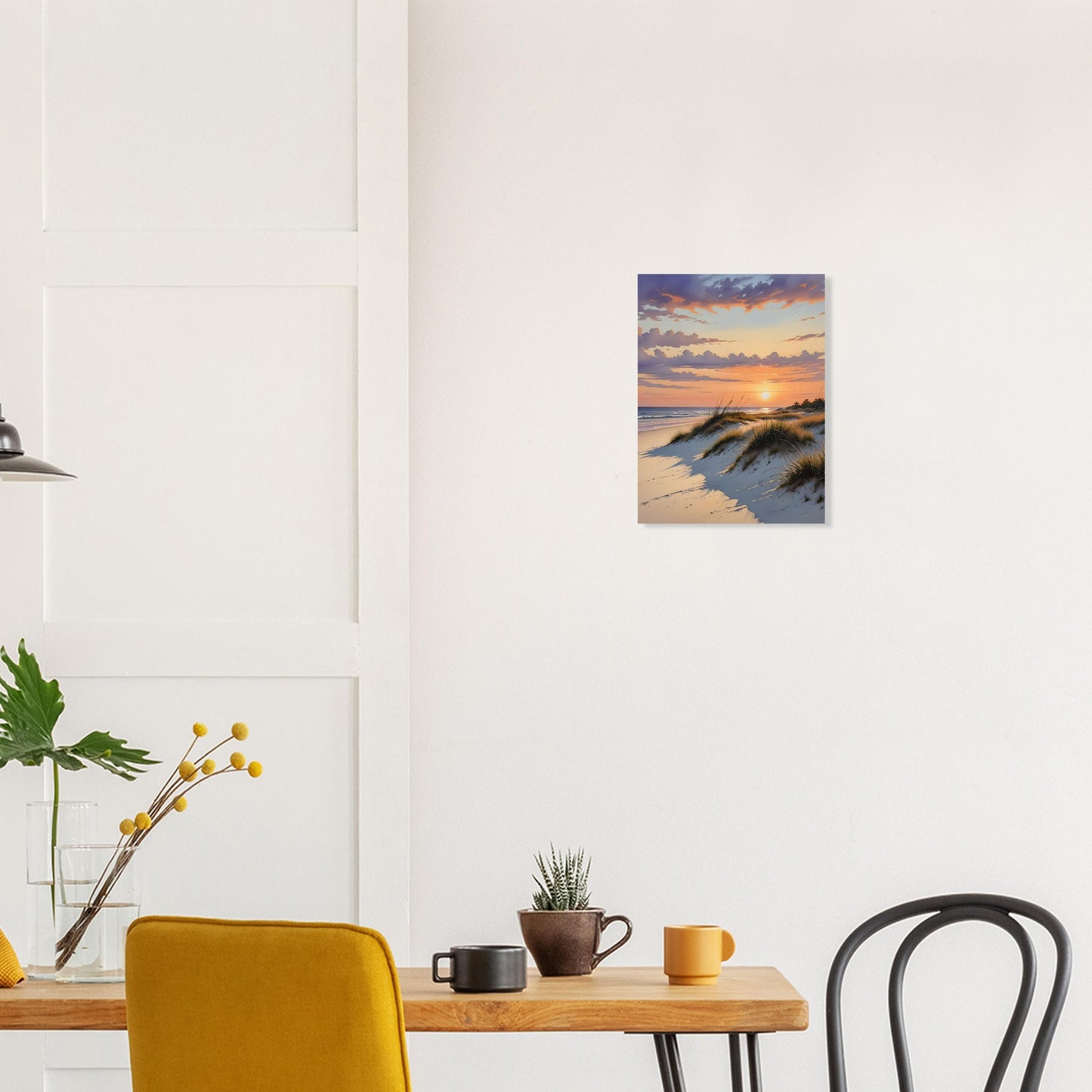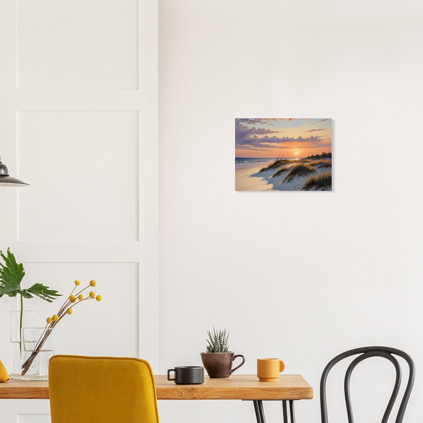 Printed on brushed silver Aluminium DIBOND® for a textured, industrial look, this option brings a unique artistic effect as colours interact with the metallic surface. The material is 3mm (0.12") thick, offering a durable, rigid base with a matte finish ideal for abstract art and black-and-white designs. The hanging kit is included and varies by fulfillment country, with sizes available in 18 options (US & Canada in inches; rest of the world in centimeters).