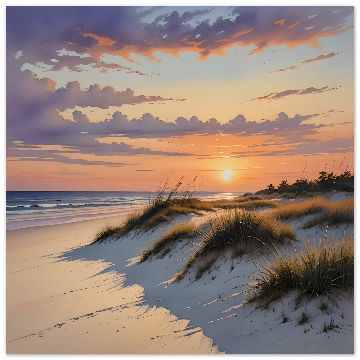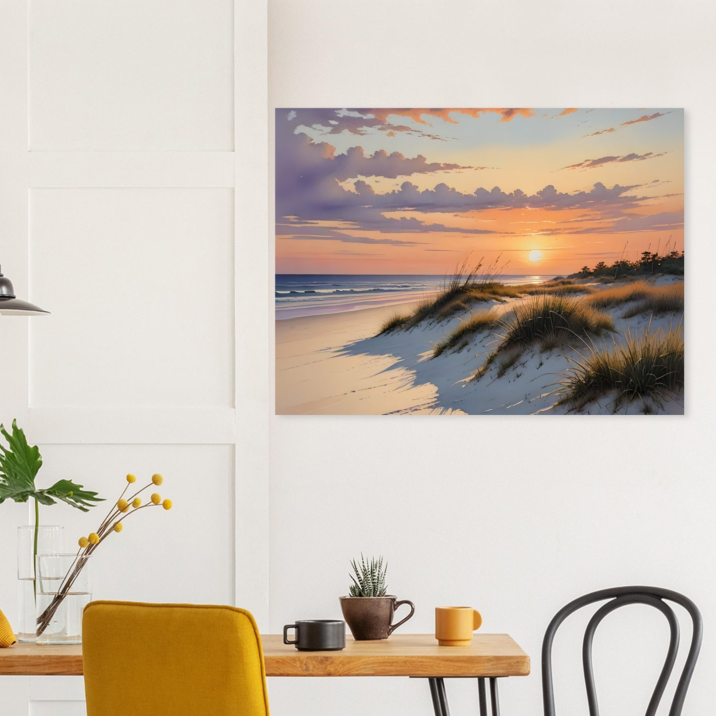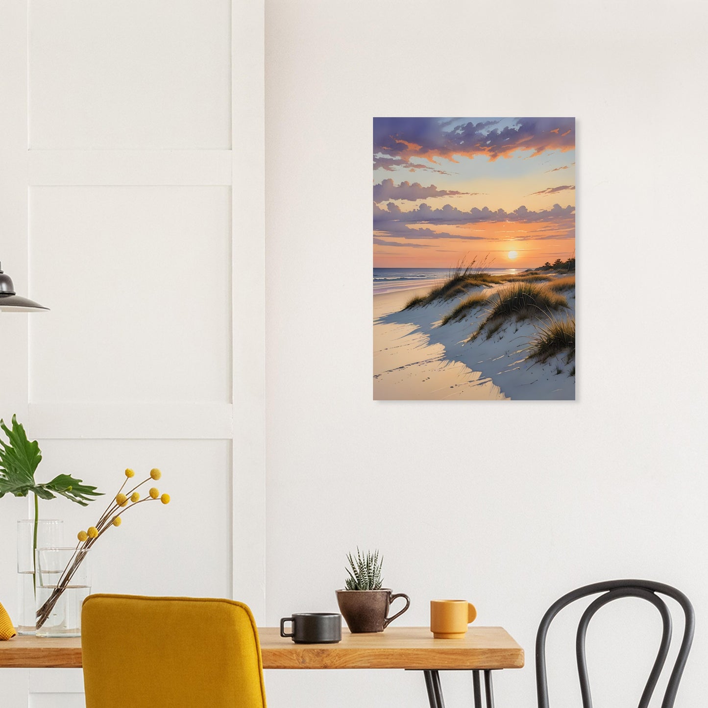 Printed on brushed silver Aluminium DIBOND® for a textured, industrial look, this option brings a unique artistic effect as colours interact with the metallic surface. The material is 3mm (0.12") thick, offering a durable, rigid base with a matte finish ideal for abstract art and black-and-white designs. The hanging kit is included and varies by fulfillment country, with sizes available in 18 options (US & Canada in inches; rest of the world in centimeters).