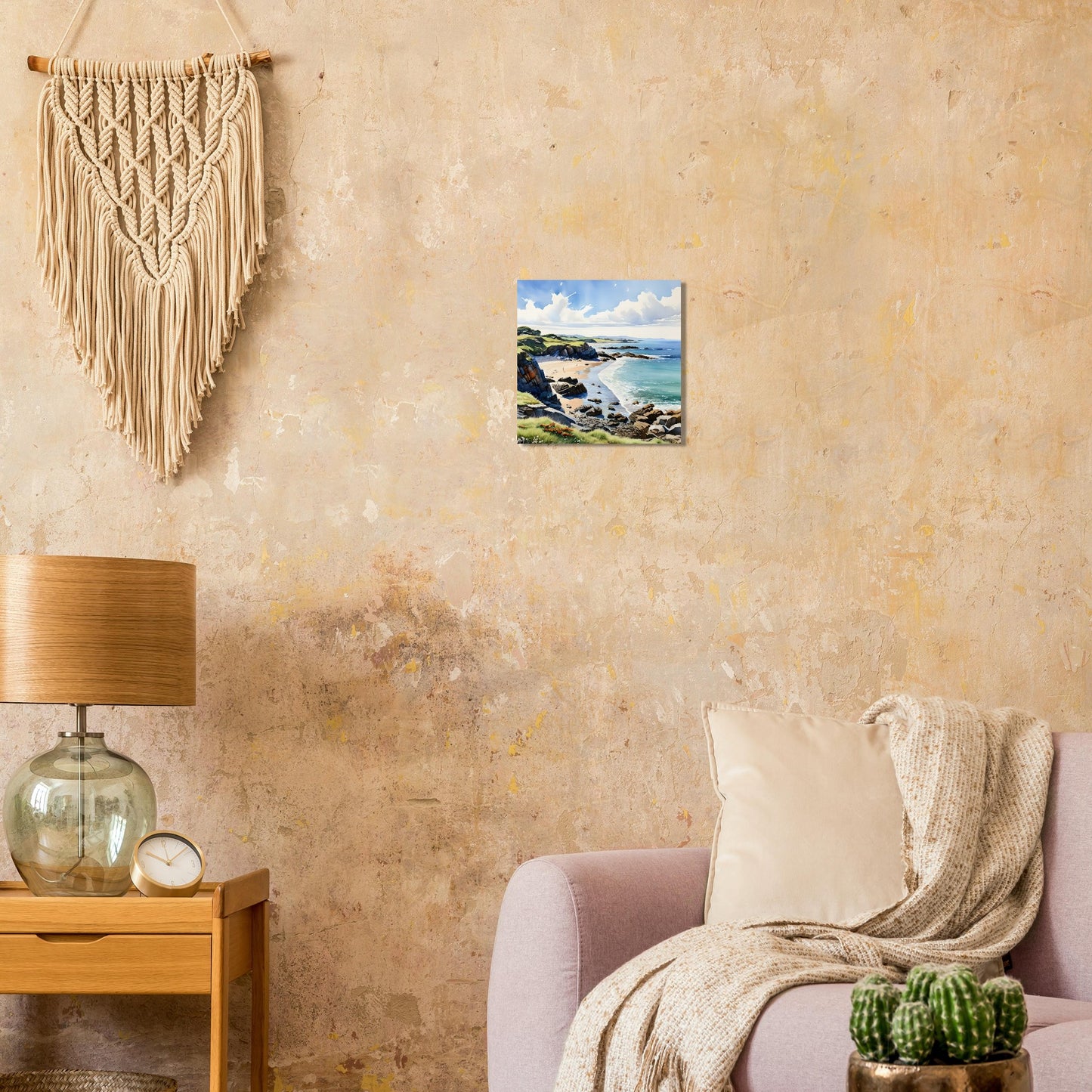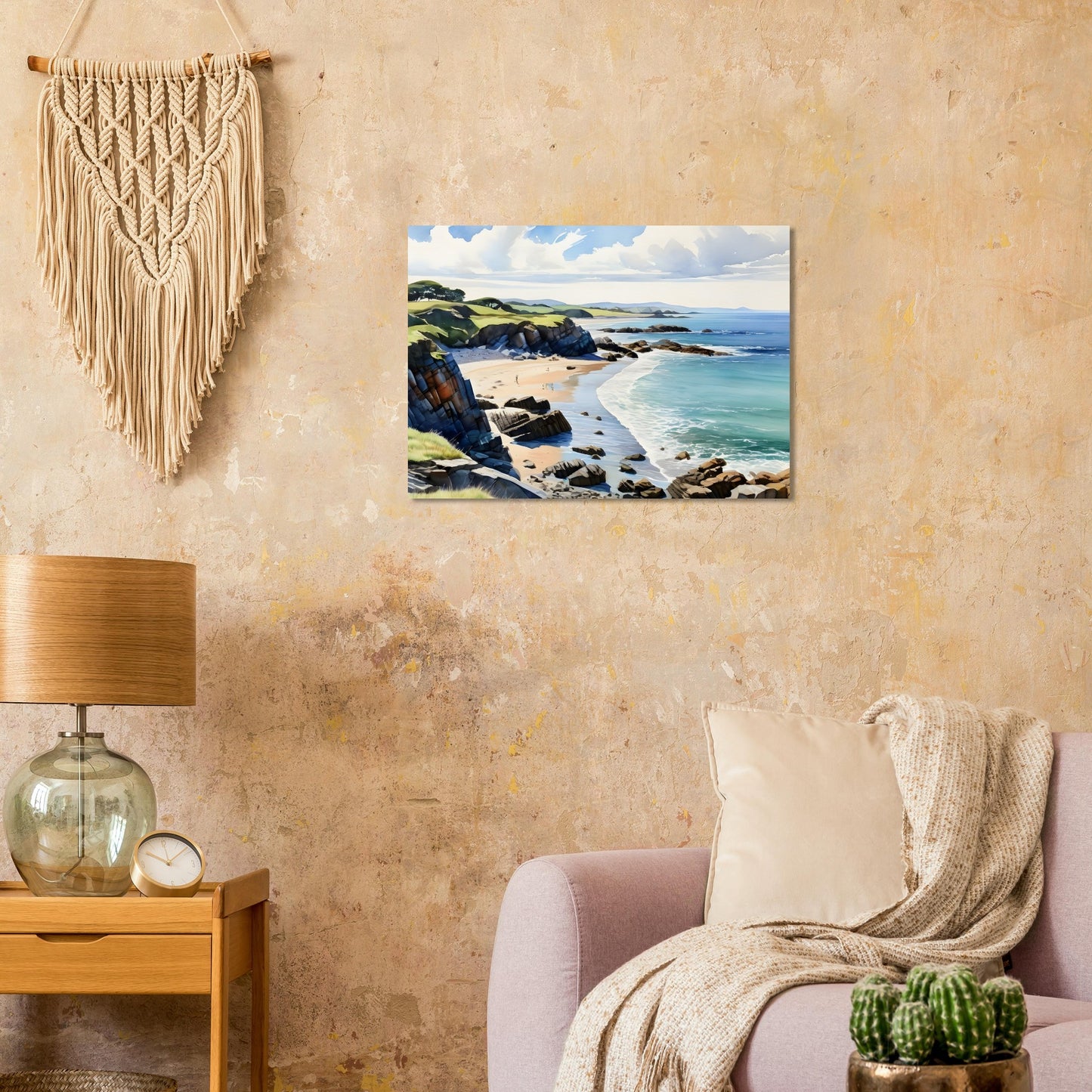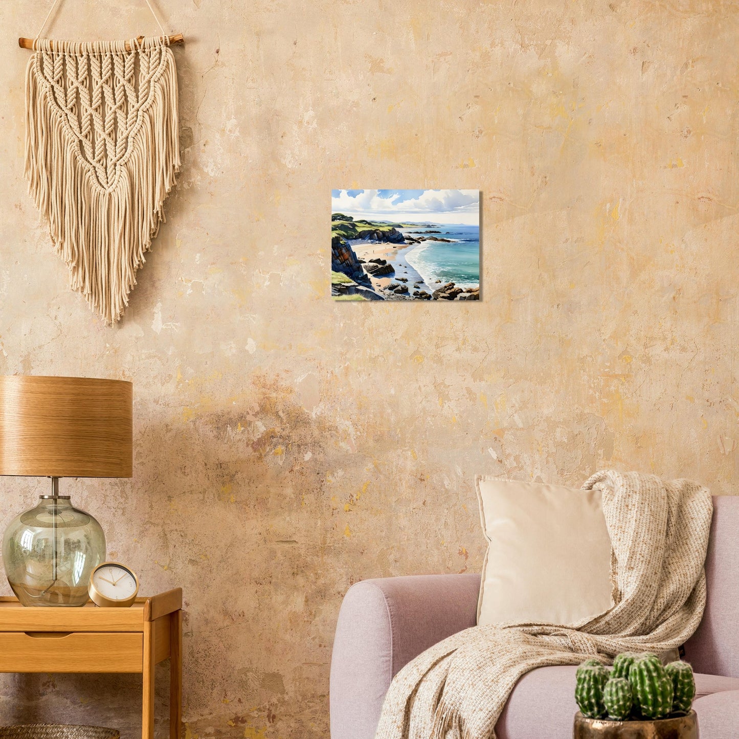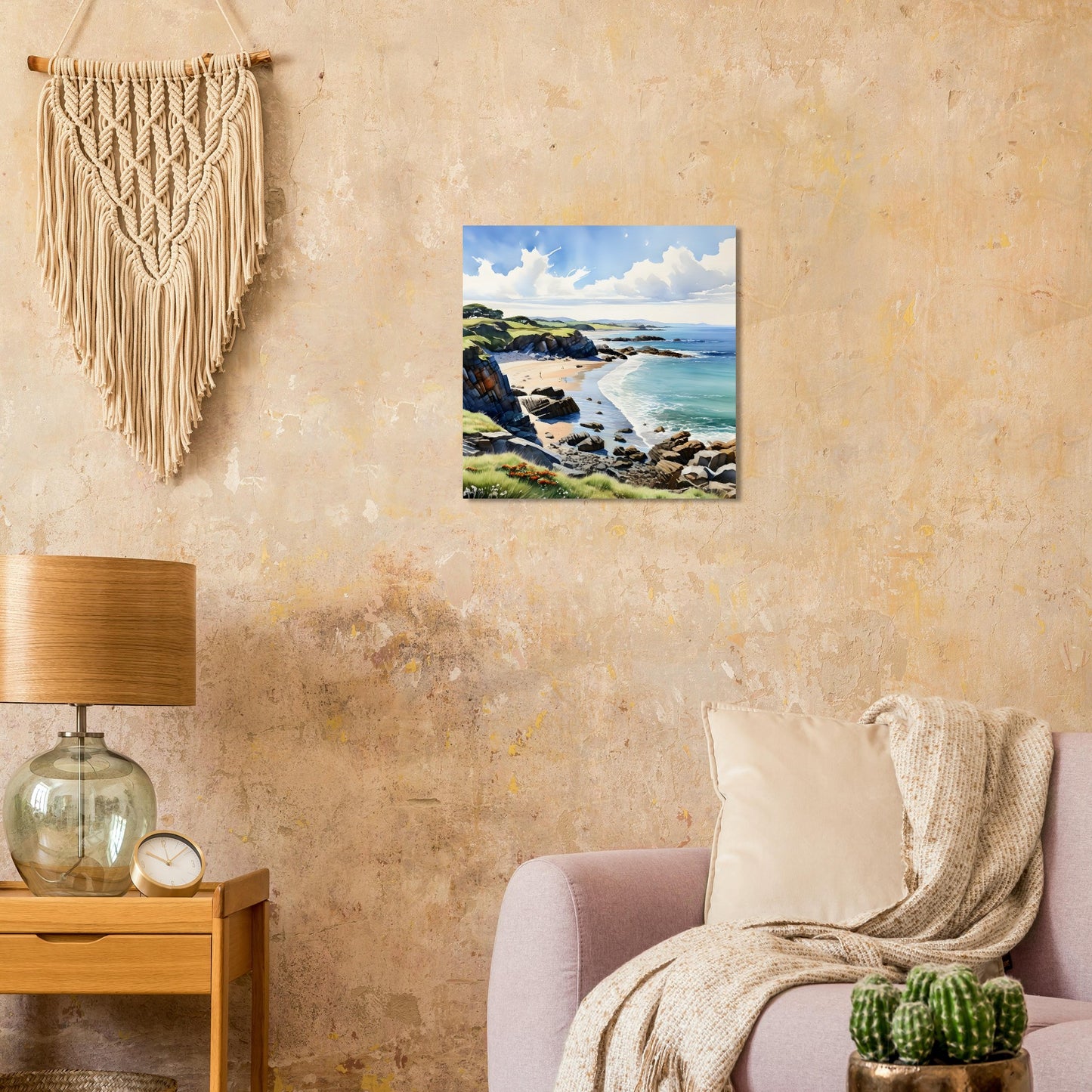 Printed on brushed silver Aluminium DIBOND® for a textured, industrial look, this option brings a unique artistic effect as colours interact with the metallic surface. The material is 3mm (0.12") thick, offering a durable, rigid base with a matte finish ideal for abstract art and black-and-white designs. The hanging kit is included and varies by fulfillment country, with sizes available in 18 options (US & Canada in inches; rest of the world in centimeters).