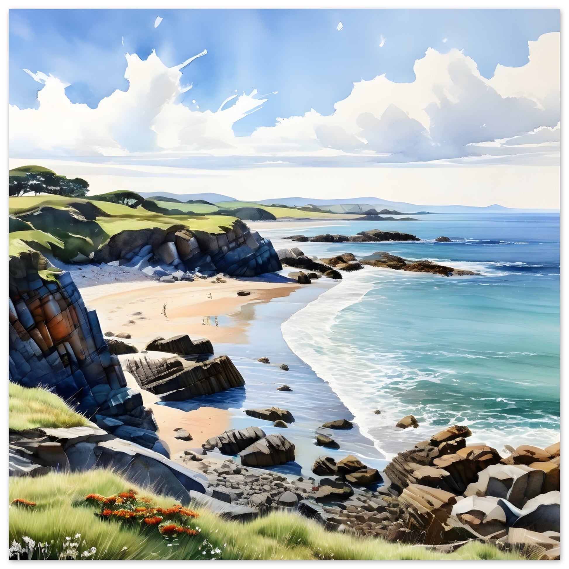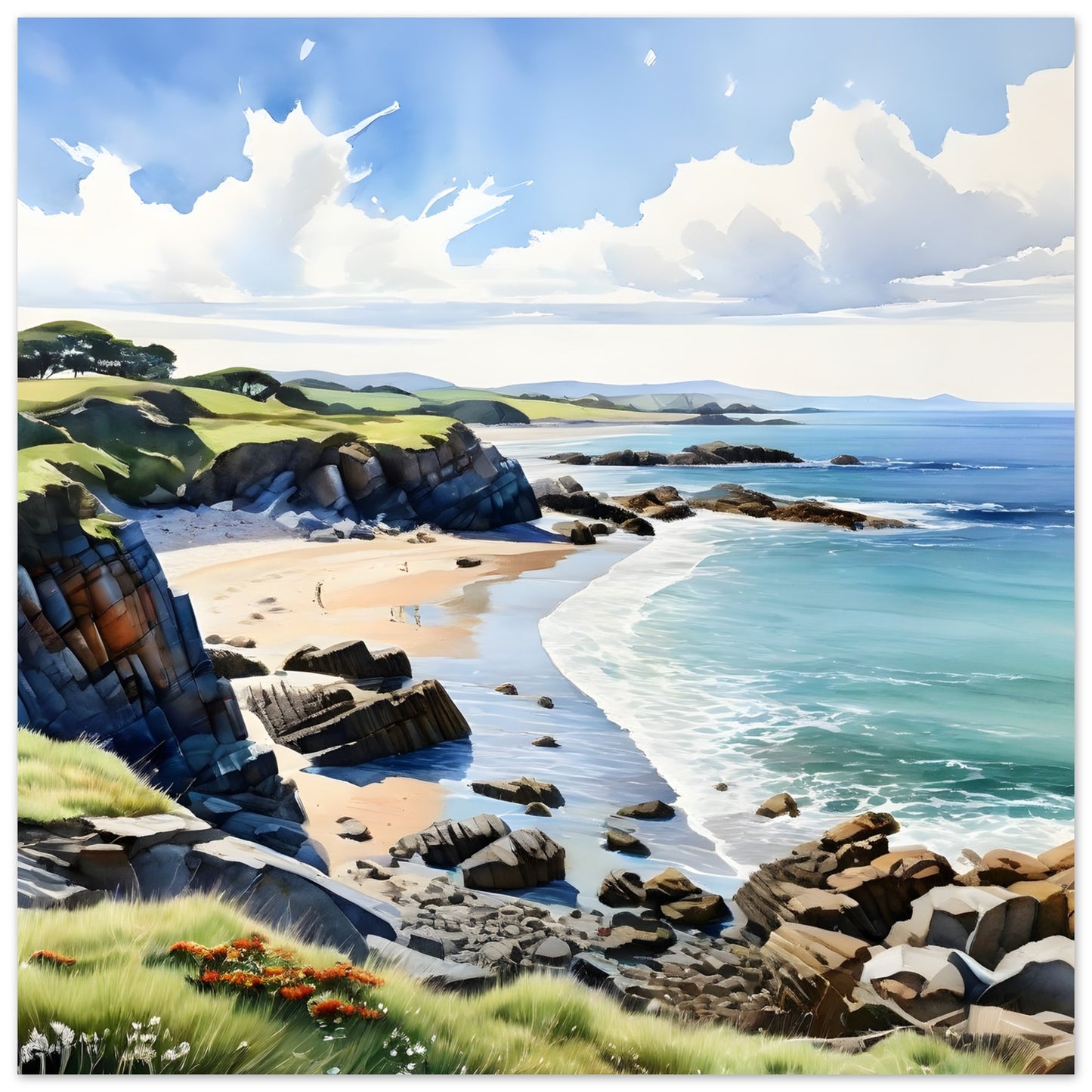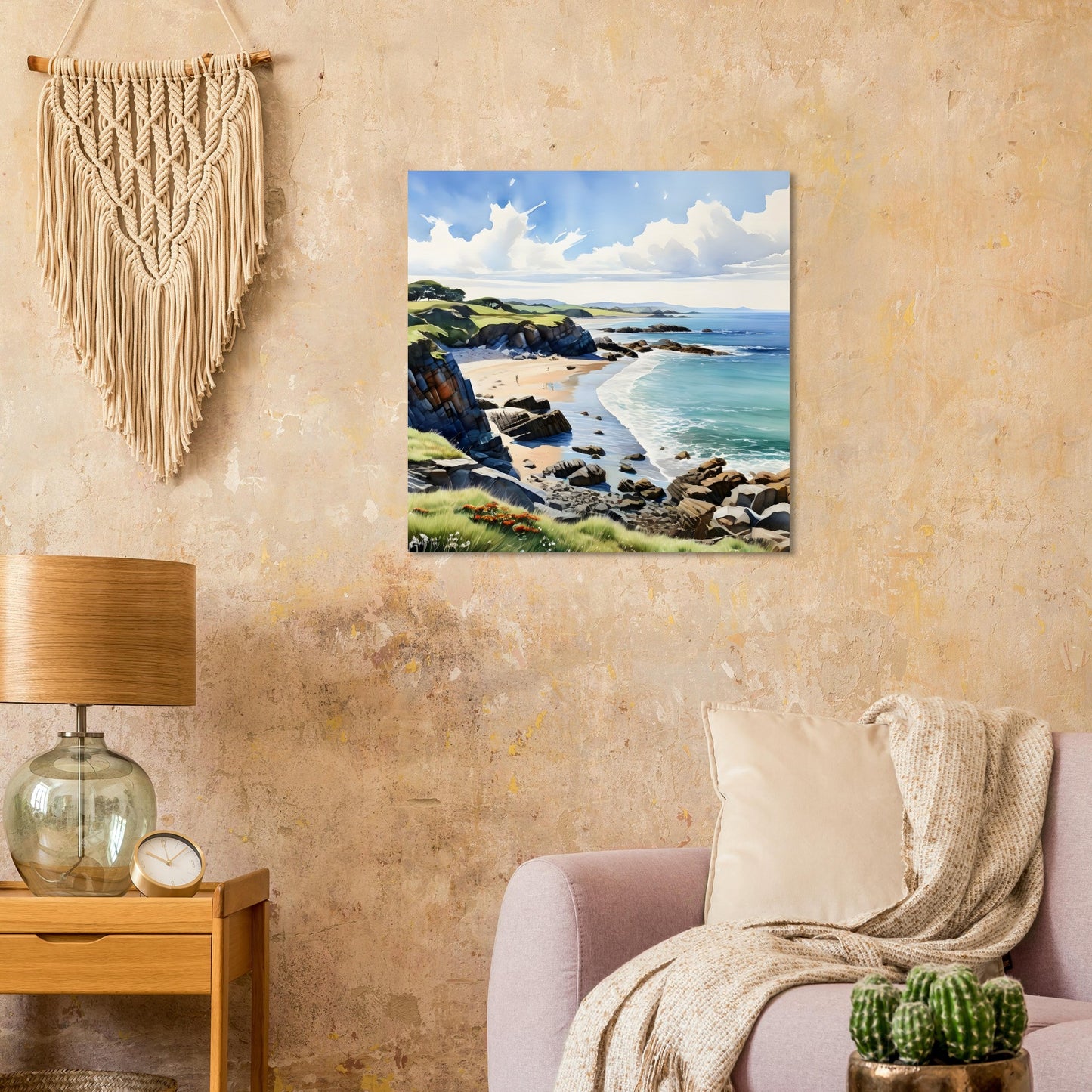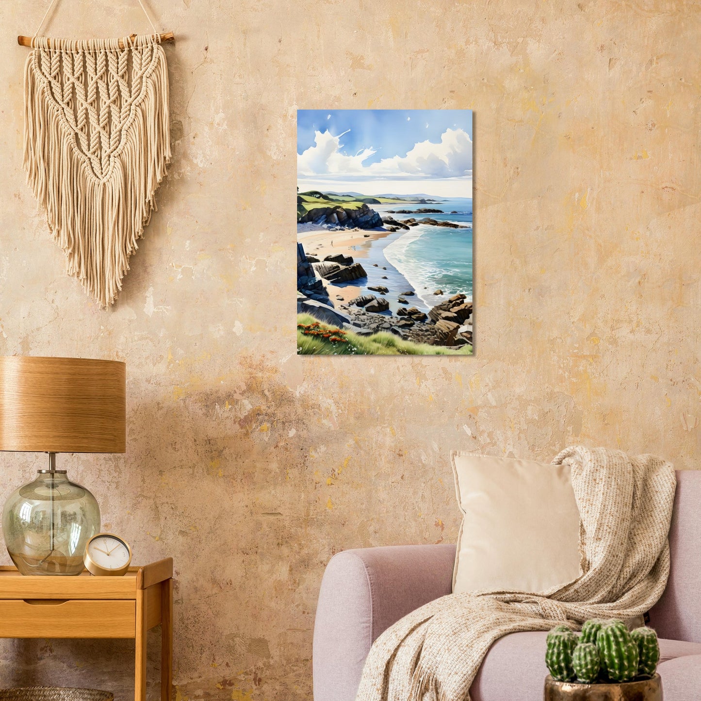 Printed on brushed silver Aluminium DIBOND® for a textured, industrial look, this option brings a unique artistic effect as colours interact with the metallic surface. The material is 3mm (0.12") thick, offering a durable, rigid base with a matte finish ideal for abstract art and black-and-white designs. The hanging kit is included and varies by fulfillment country, with sizes available in 18 options (US & Canada in inches; rest of the world in centimeters).
