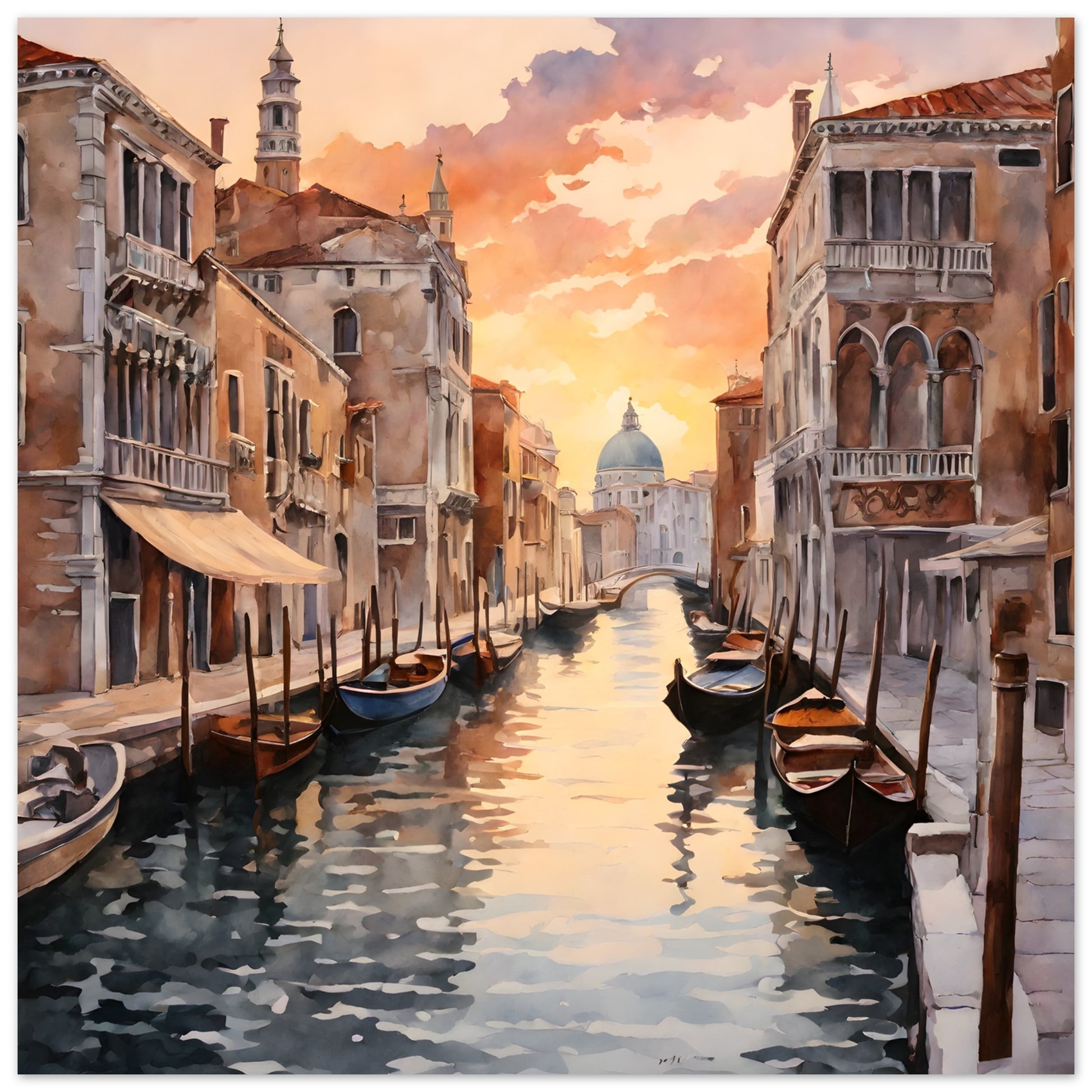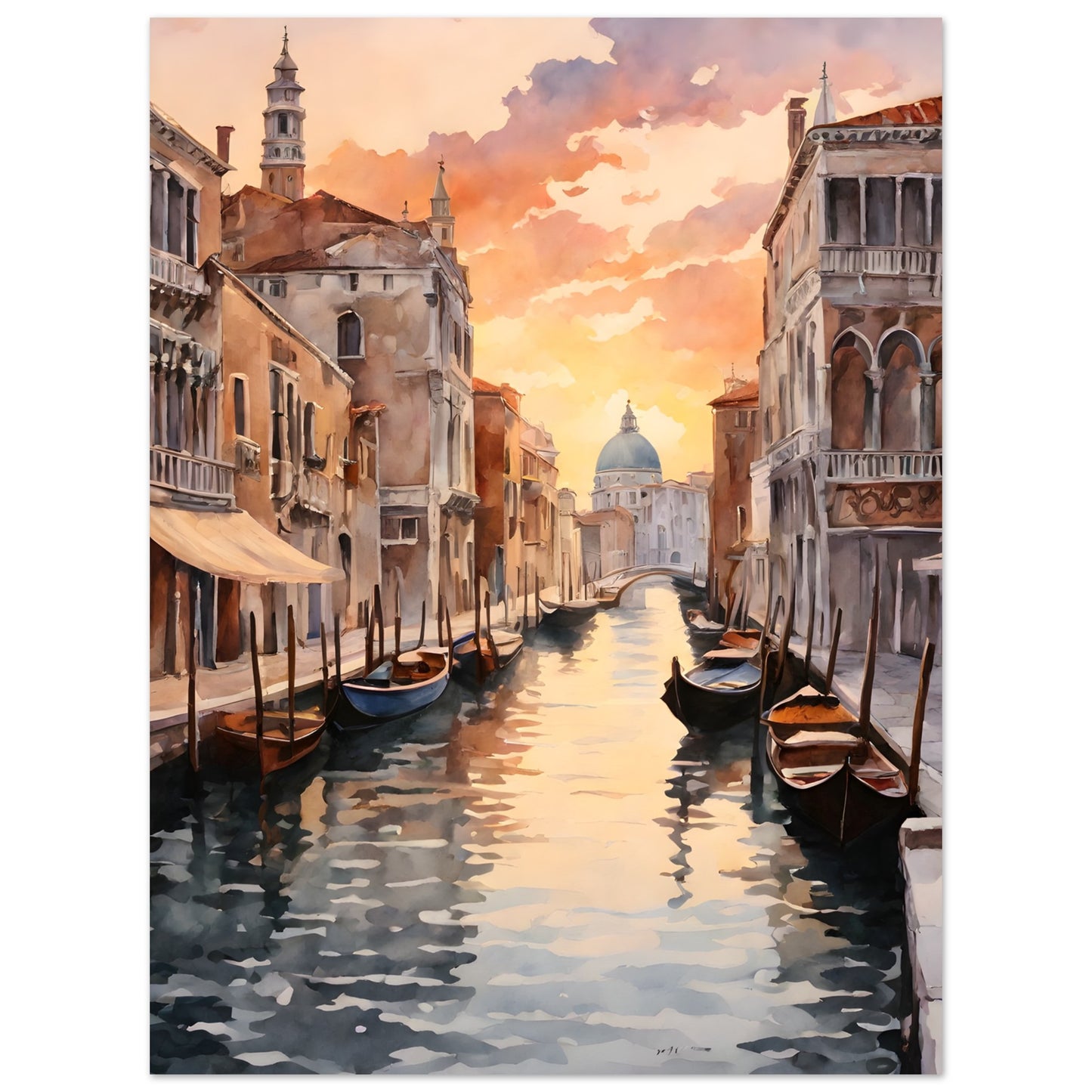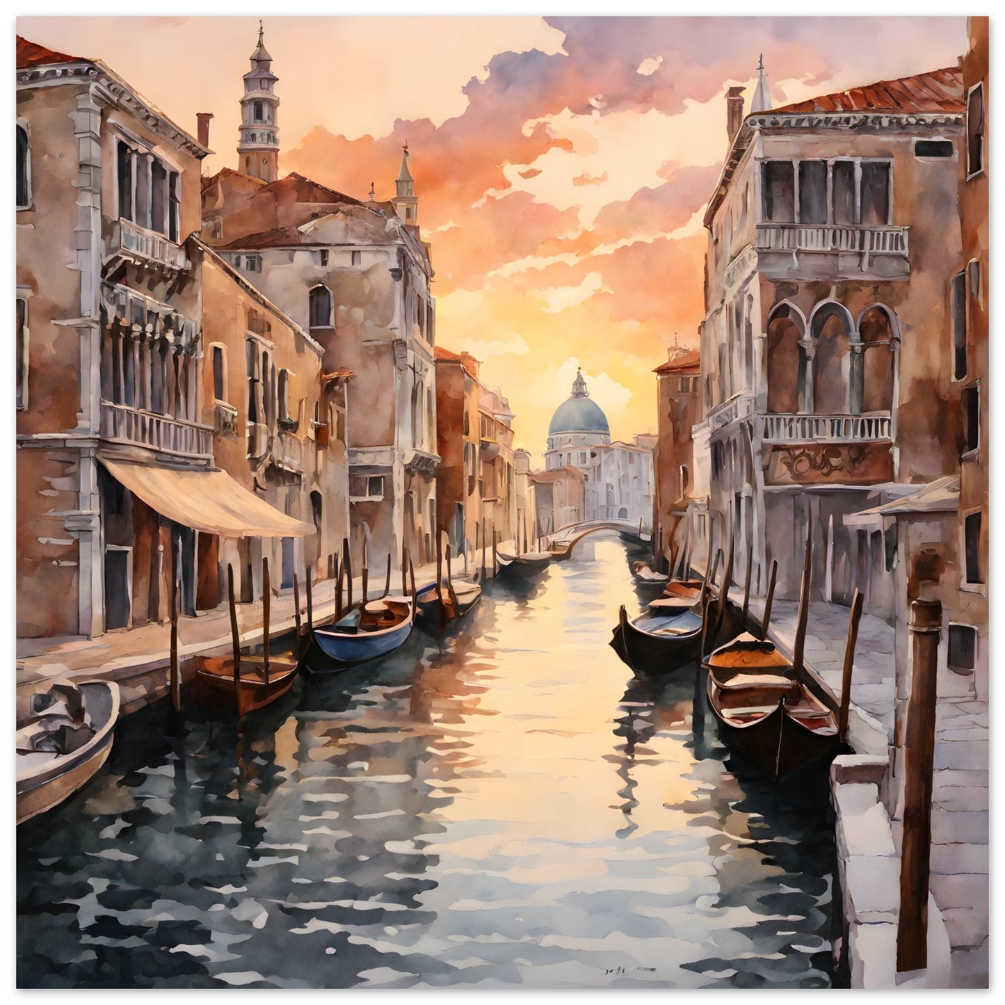 Venetian Serenade: A Watercolor Sunset Painting of Venice's Iconic Streets