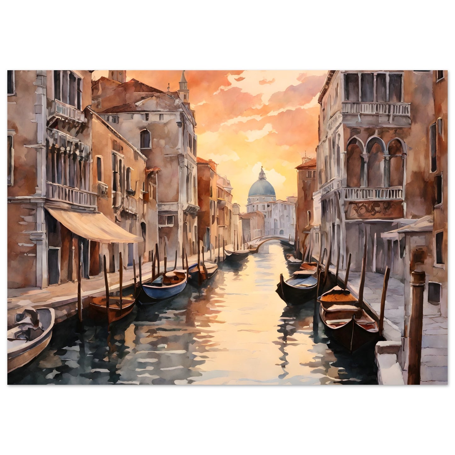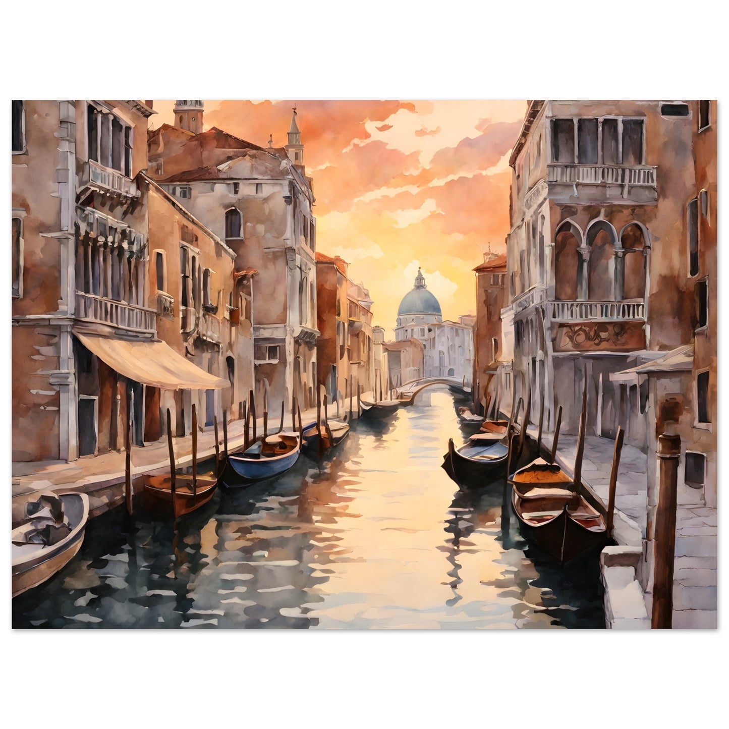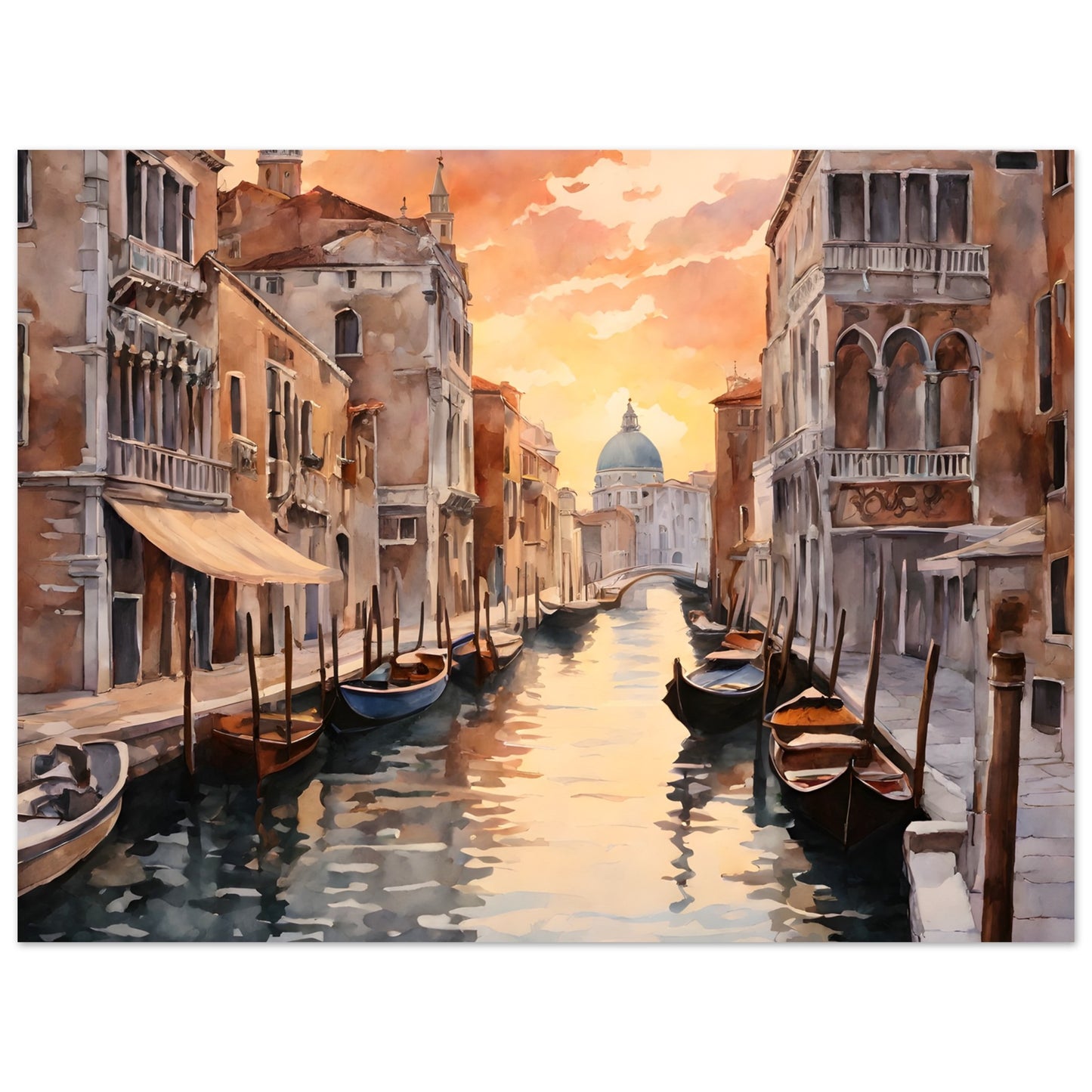 Venetian Serenade: A Watercolor Sunset Painting of Venice's Iconic Streets