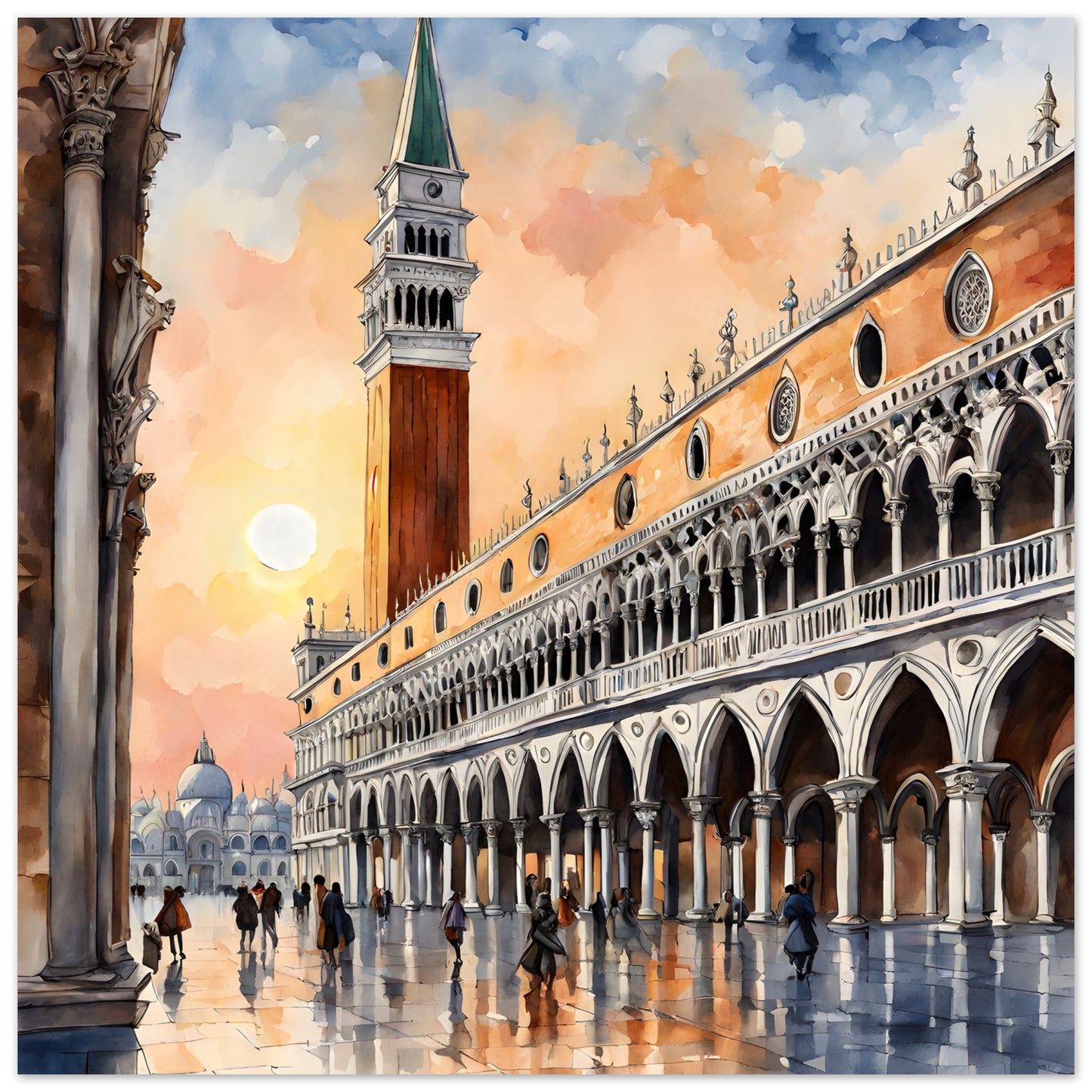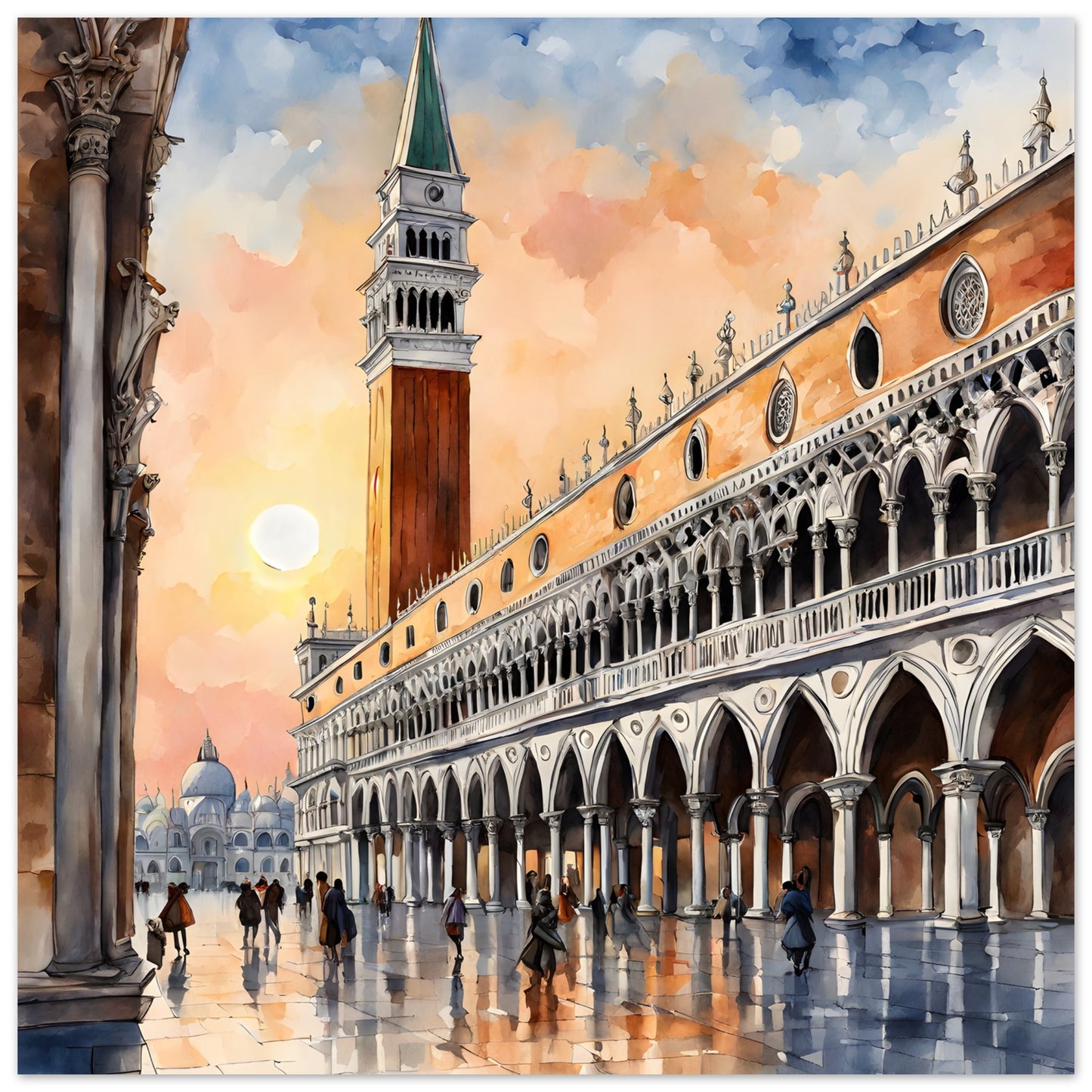 Venice Sunset: Piazza San Marco in Watercolor Beauty