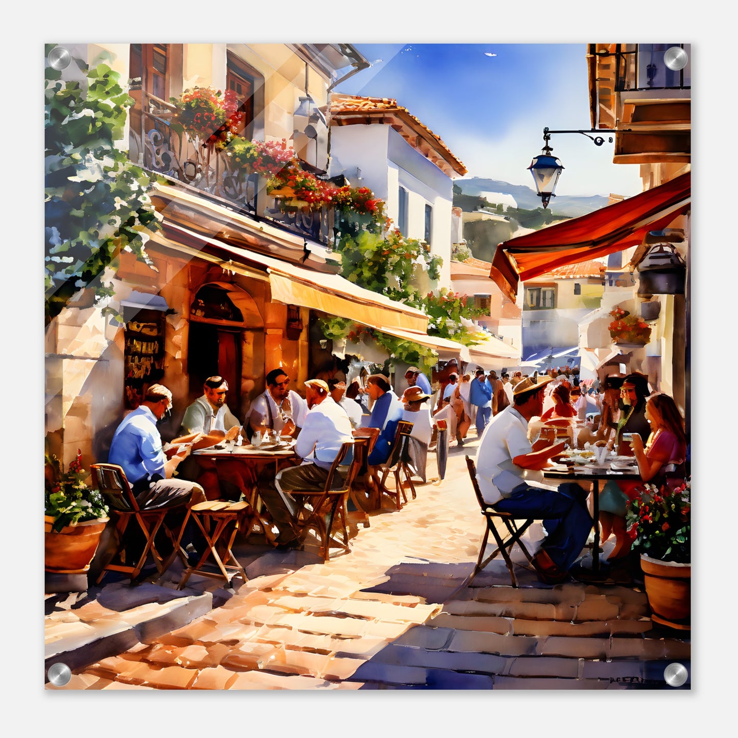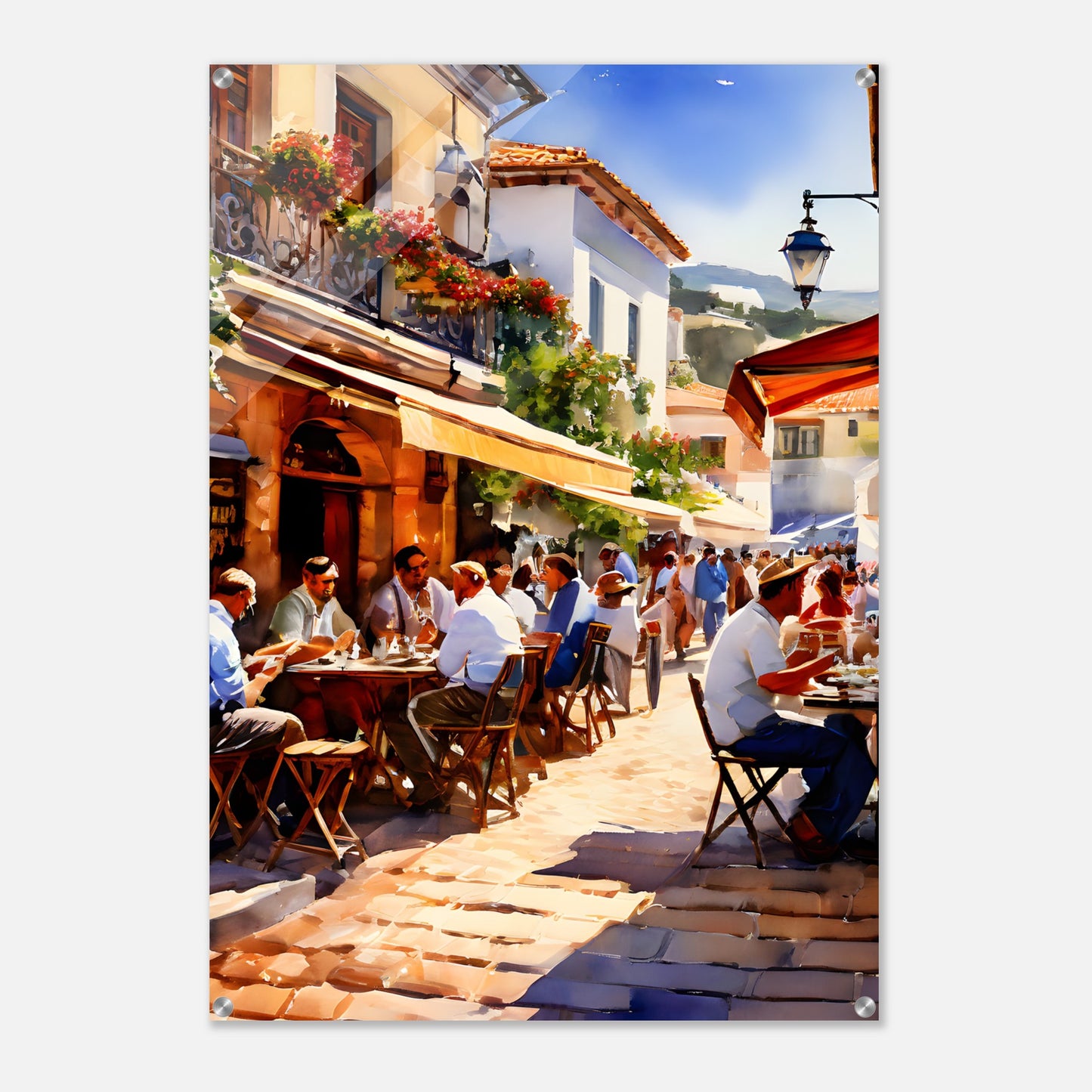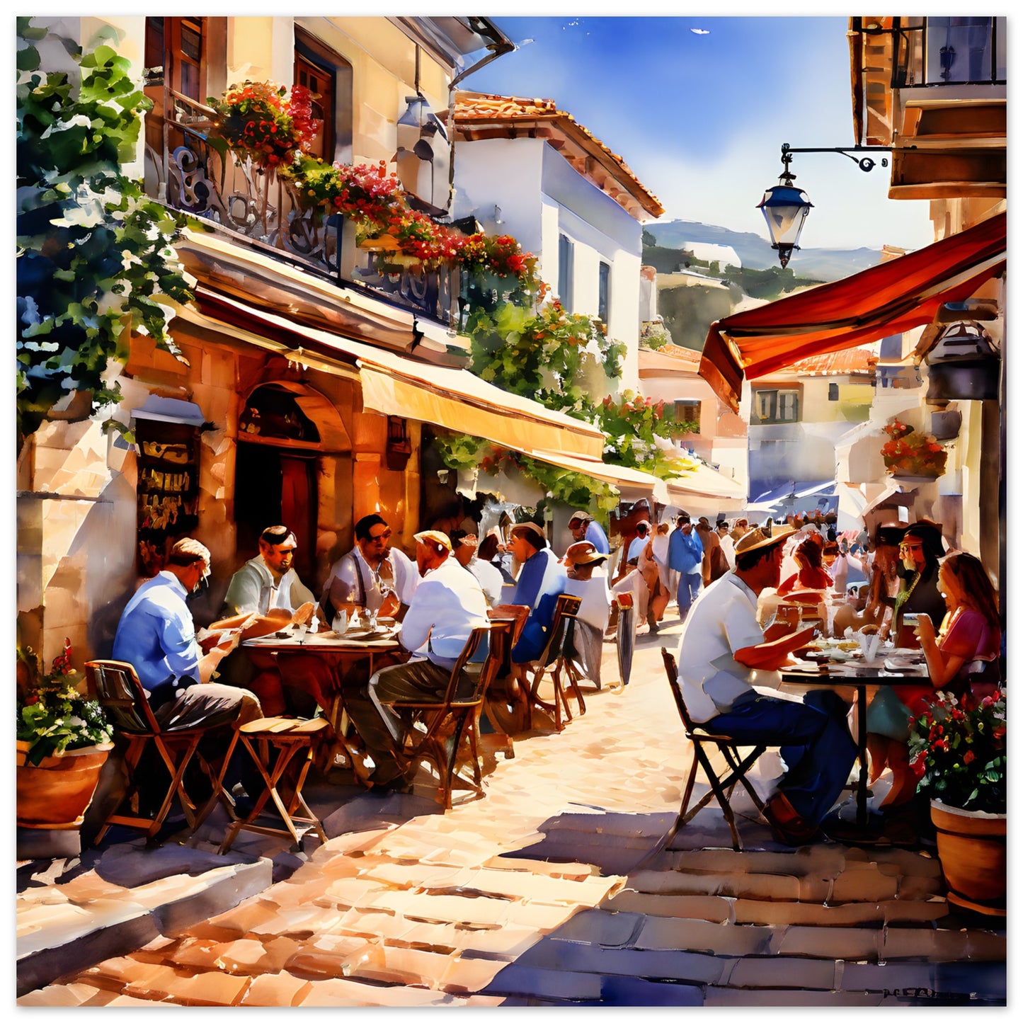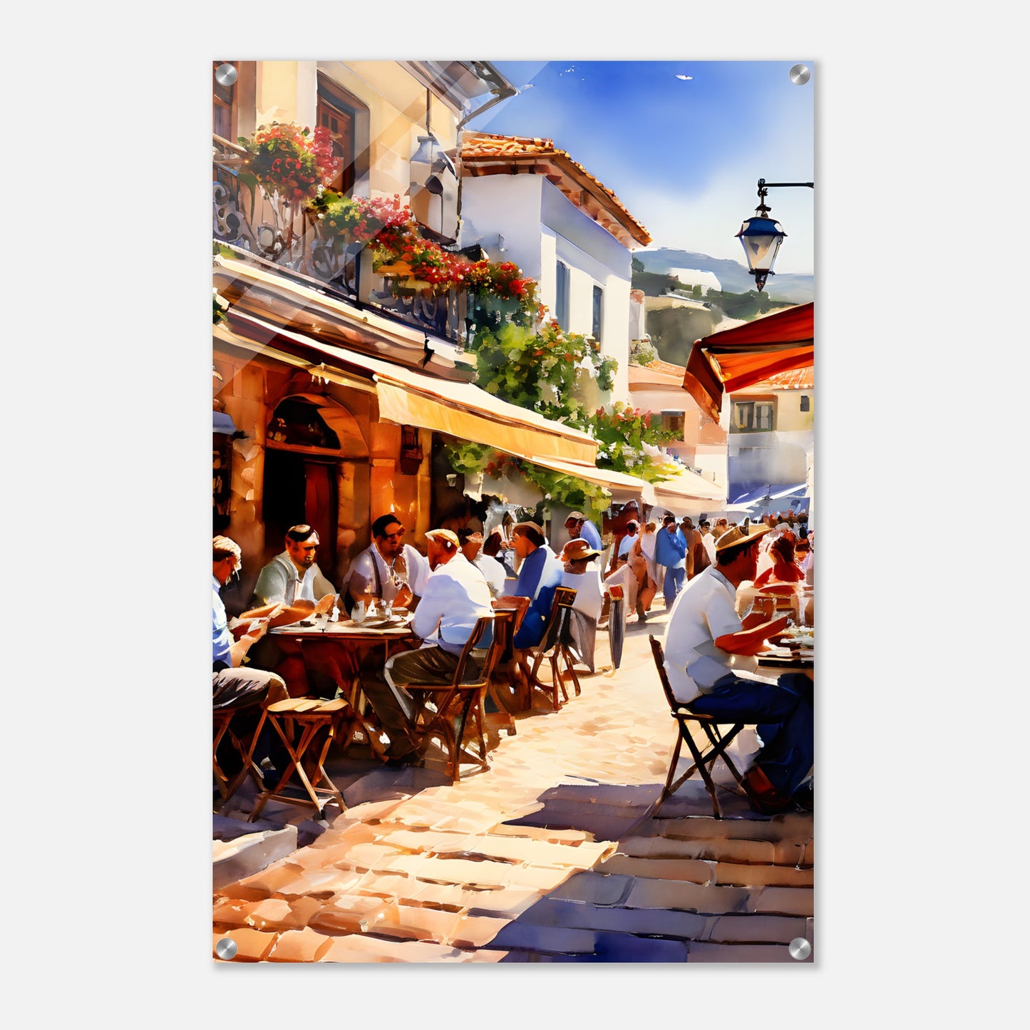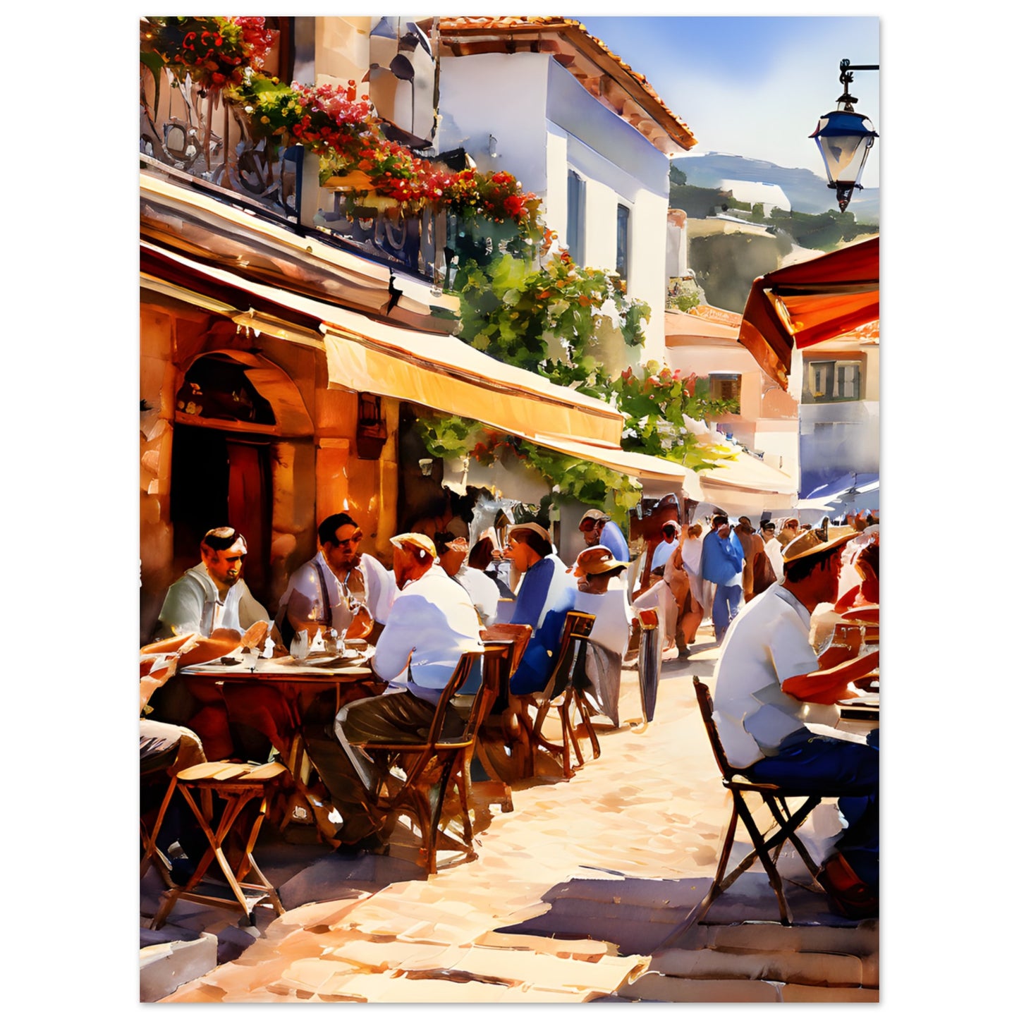 Vibrant Skiathos Watercolor Street Scene - Wall art